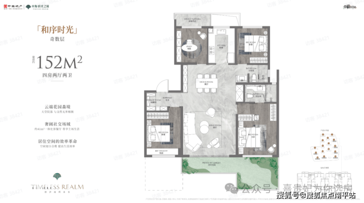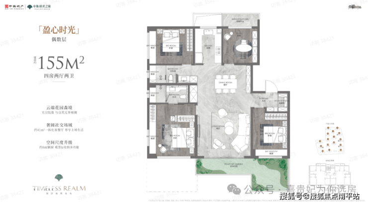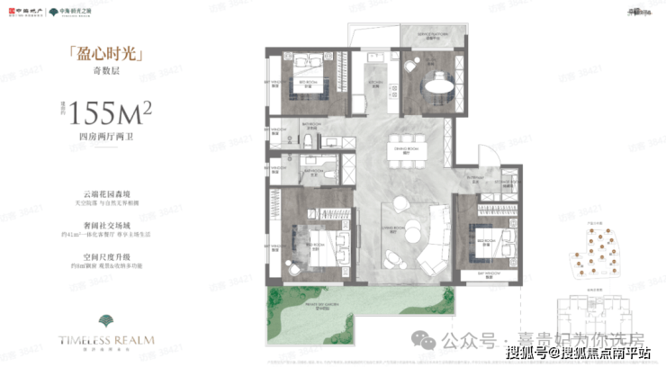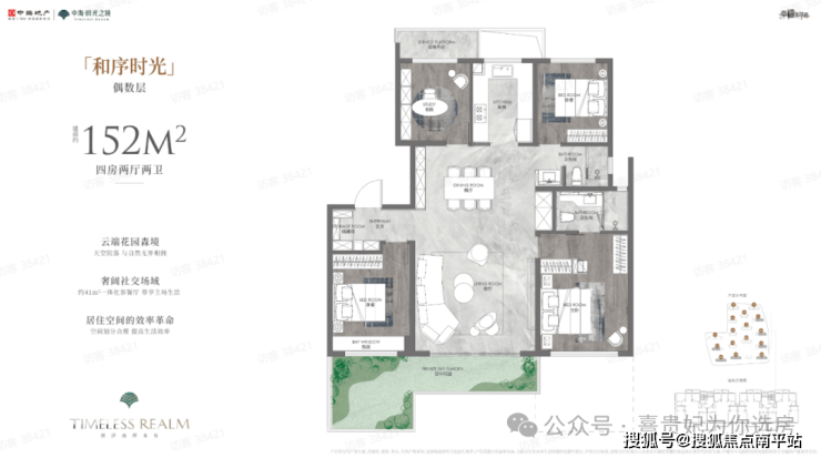 建面约152㎡、155㎡两款4室2厅2卫户型,得房率约94%-100%,在保证强功能性的同时,更以细节设计提升居住舒适度。