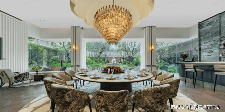 而且会所是围合式布局,沿下沉庭院展开,大面积落地窗把庭院景致“拉”进室内,休闲时抬头就是风景,这才是高端社区该有的样子。