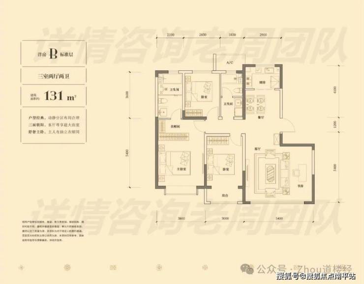 ·【洋房B】建面约131㎡(三室两厅两卫)
