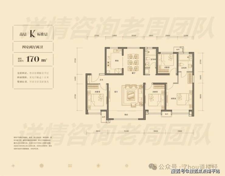 高层:90㎡/99㎡/115㎡/128㎡ 两梯四户、120㎡/170㎡ 两梯三户