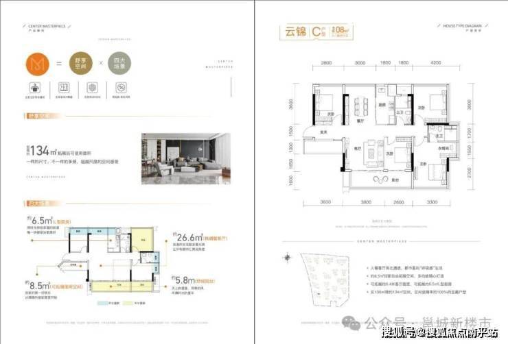 108㎡3+1房2厅2卫(拓展后可使用面积134㎡,含建面)