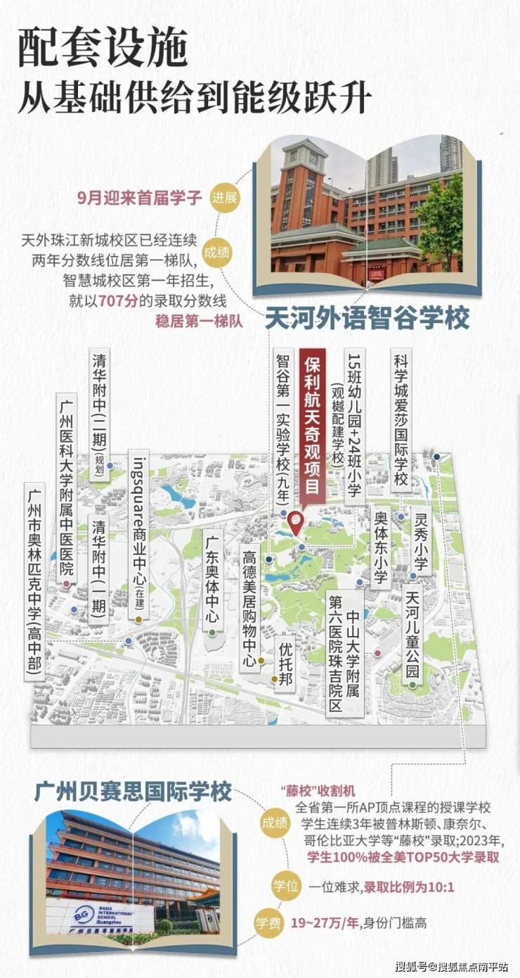 天外智谷分为两个校区,越秀观樾配建24班小学;缦云广州配建的九年制学校(18班小学+27班中学),今年9月份可以报名读书。