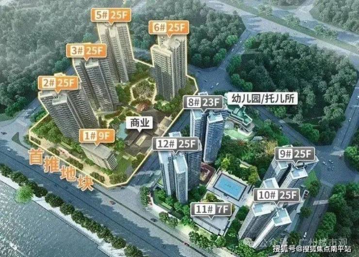 2023年初,番禺交投官宣联手绿城代建,项目开始有新进度,根据规划,项目分为东西两个地块,全盘共计9栋住宅,以两梯四户全南向产品为主,主力产品为建面约110-180㎡四房。