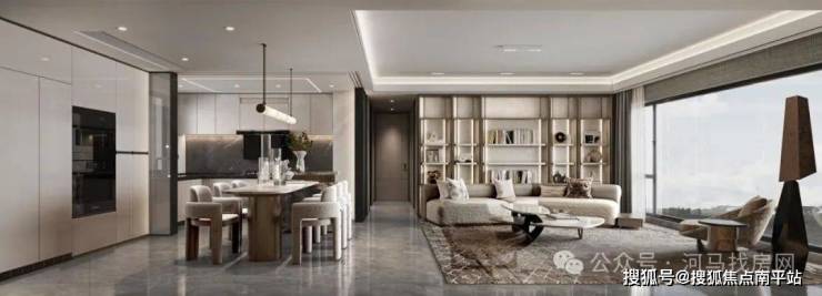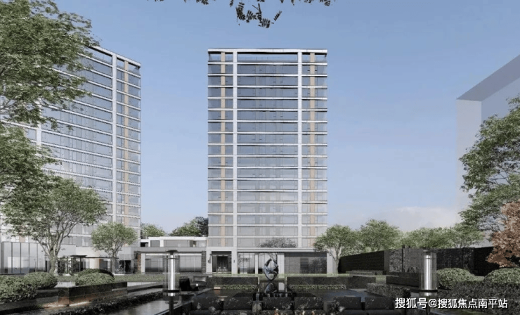 ②比肩一线城市豪宅的公建化立面形象:类公建现代都市颜大面积玻璃幕,搭配金属铝板和真石漆涂料,使得整体建筑大气简洁与线条流畅,建筑现代都市感气息浓郁。