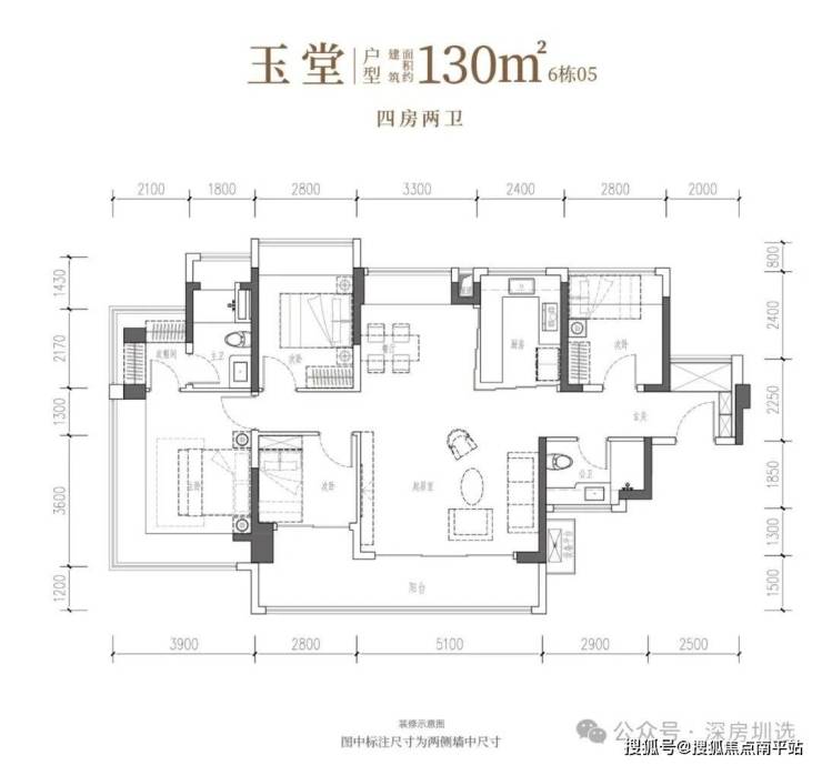 •玉堂·建面约130㎡4房2厅2卫:南向四开间,约14.7米IMAX光幕,尺度自成