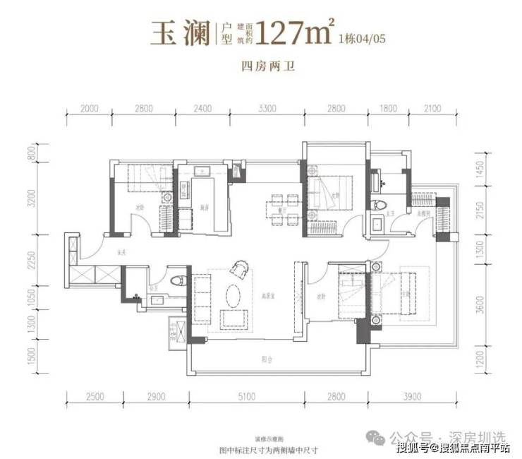 •玉澜·建面约127㎡4房2厅2卫:南向四开间,南北通透,约14.7米IMAX光幕,独立衣帽间