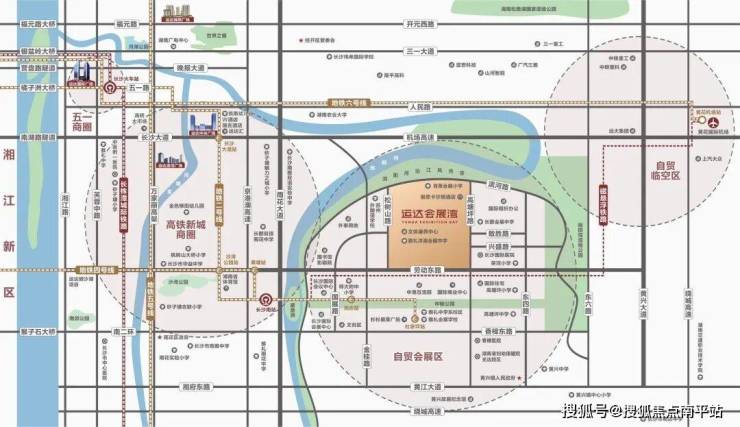 项目所在的长沙会展片区,是湖南省政府和长沙市政府重点发展的长沙副中心、中部地区国家级门户。集“高铁枢纽、空港机场、会展会议、生态文旅”等优质资源于一体,叠加“自贸区”开放平台优势,是媲美上海虹桥的空铁一体城市新区、长沙连接世界的新中心。