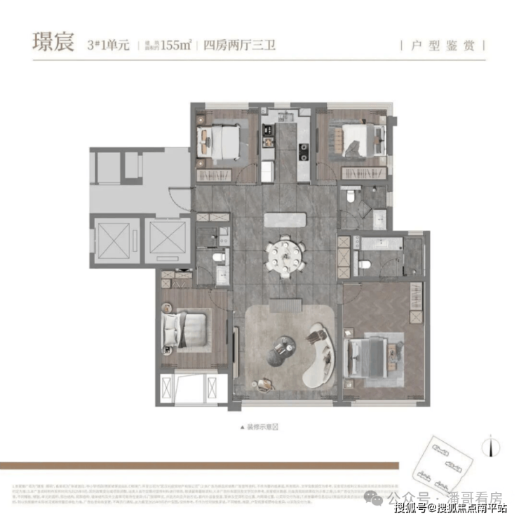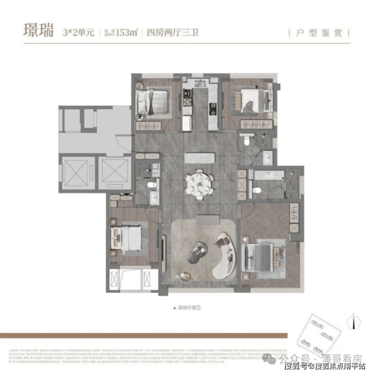 ③153㎡四房两厅三卫(3号楼东边户):“四叶草”布局显人性化,采光有小瑕疵
