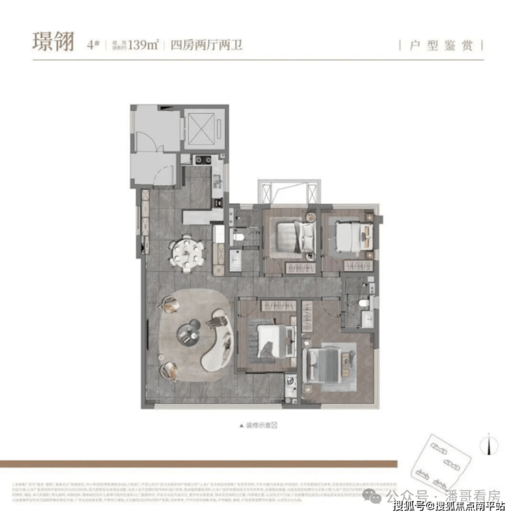 ②139㎡四房两厅两卫(4号楼端头边户):功能性拉满,主卧飘窗是“双刃剑”