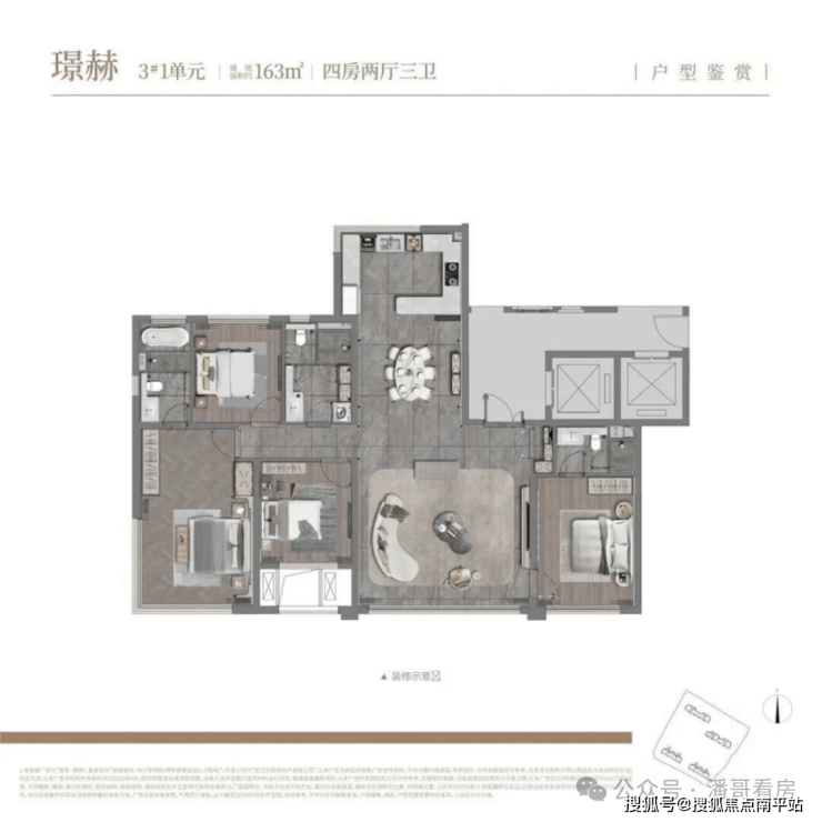 ⑤163㎡四房两厅三卫(3号楼端头西边户):武昌内环的“舒适型”标杆,暗卫是唯一遗憾