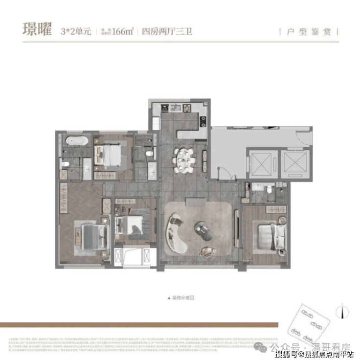 ⑥166㎡四房两厅三卫(3号楼单元拼接处,实际算中间户):163㎡的“平替版”,性价比一般