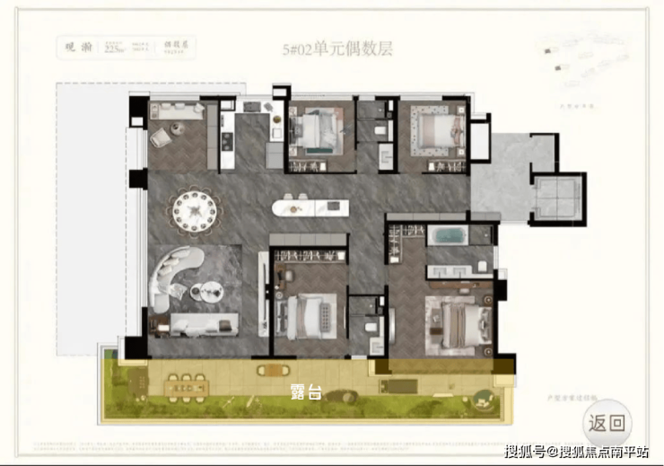相较于偶数层的常规布局,奇数层凭借「端卧 + 边露台」的组合,实现了改善型产品在空间稀缺性与居住体验上的双重跃升。
