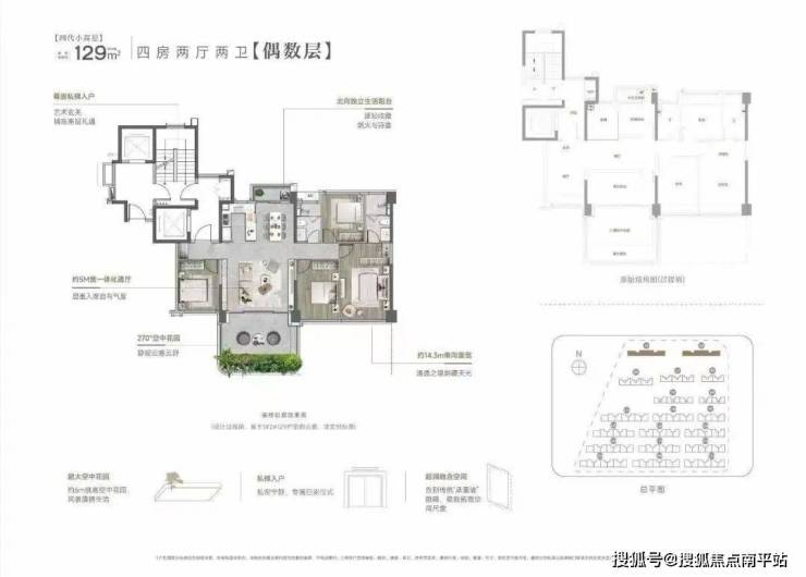 小高层户型,建筑面积约129-139㎡的四代小高层,采用错层挑高设计,配备空中花园与私梯入户,并拥有约3米的层高配置,全方位提升空间的别墅级居住体验。