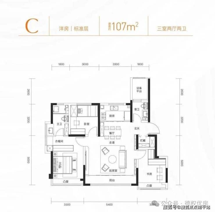 🔥3号楼107㎡:360-390万 开间5.4