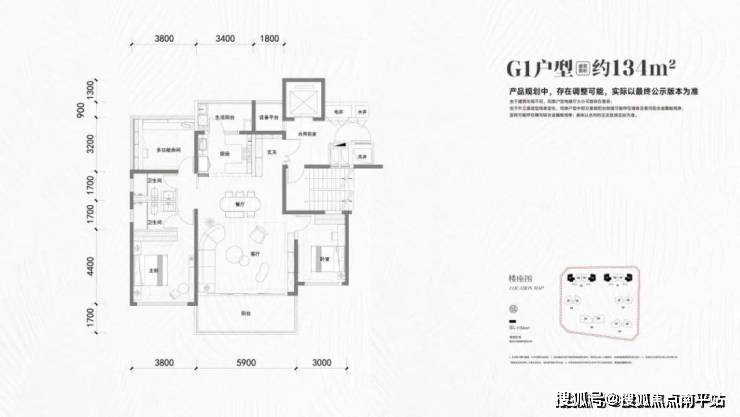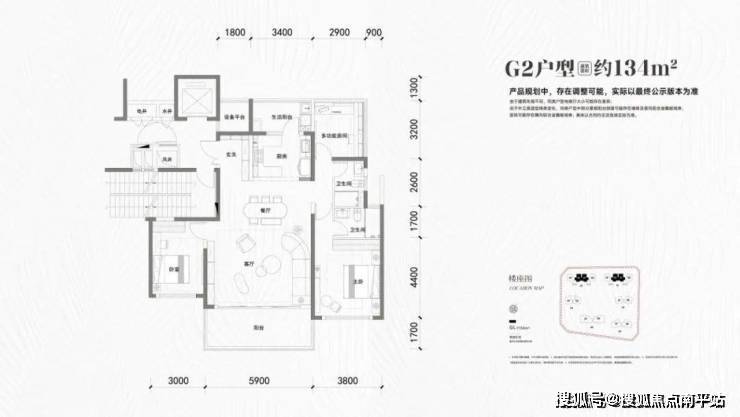 134㎡三房两厅两卫(G1户型,大边户)