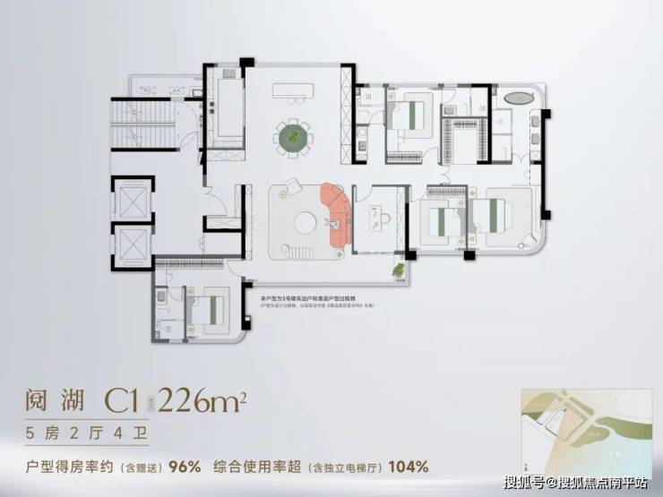 【灵活格局】适配改善,5房2厅4卫设计, 约37㎡主卧总统套房,兼顾私密与尺度。