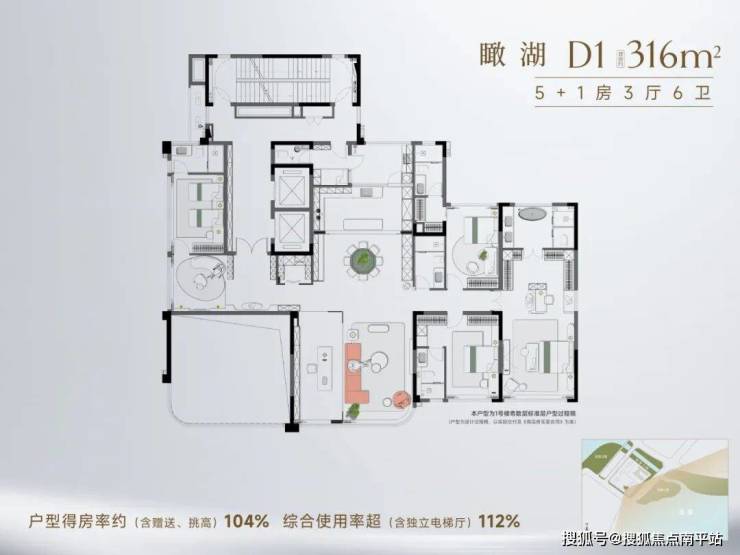 【高赠高用】极致扩容, 赠送约90㎡,得房率104%、综合使用率112%, 户型方正,空间利用率拉满;