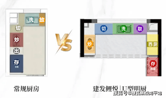 全明优化餐厨:户户配置可打造U型操作台的厨房,且厨房均带开窗设计,既提升了烹饪时的操作效率,又能引入自然光线与新鲜空气,避免油烟闷闭,改善餐厨体验。