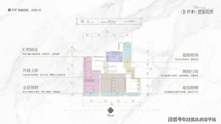 ▲保利珺璟和煦建面约107㎡3+1室2厅户型图