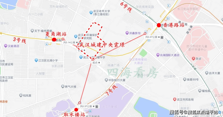 地铁与公交:武汉城建中央雲璟周边几乎都是被地铁环绕了,项目距离3、6、7号地铁换乘站香港路站直线距离约400多米,距离3号线菱角湖站最近,约100多米,其次是7号线取水楼站,约300多米,都是步行距离。