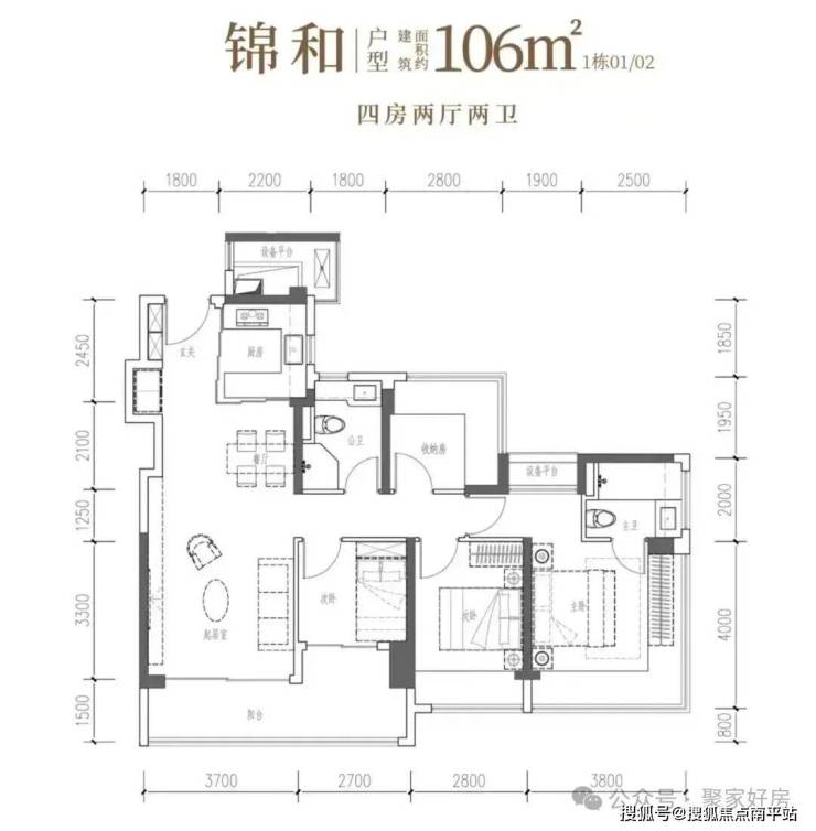 首推6栋产品有88-89㎡ 3房2厅2卫,106-127㎡ 4房2厅2卫户型,总高16层,2梯6户设计,全朝南向