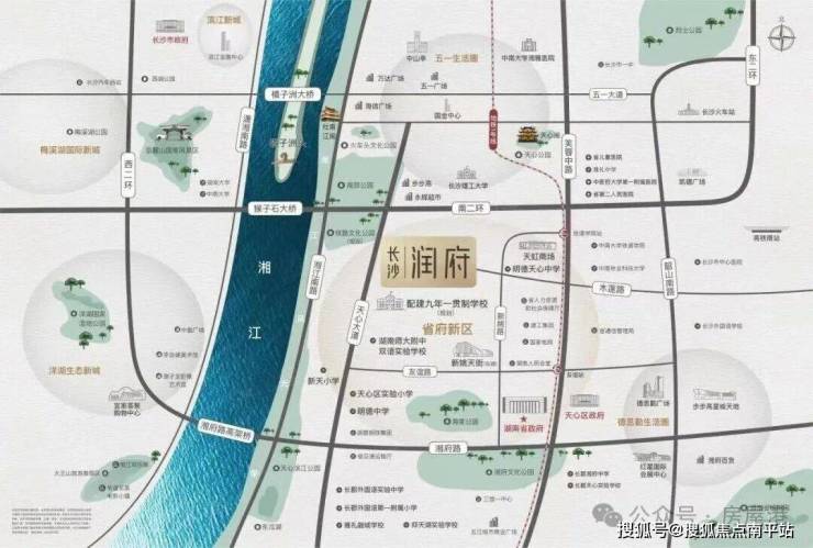 长沙润府,位于省府北,建筑面积约83万㎡,涵盖商业、住宅、学校、公园全业态于一体。