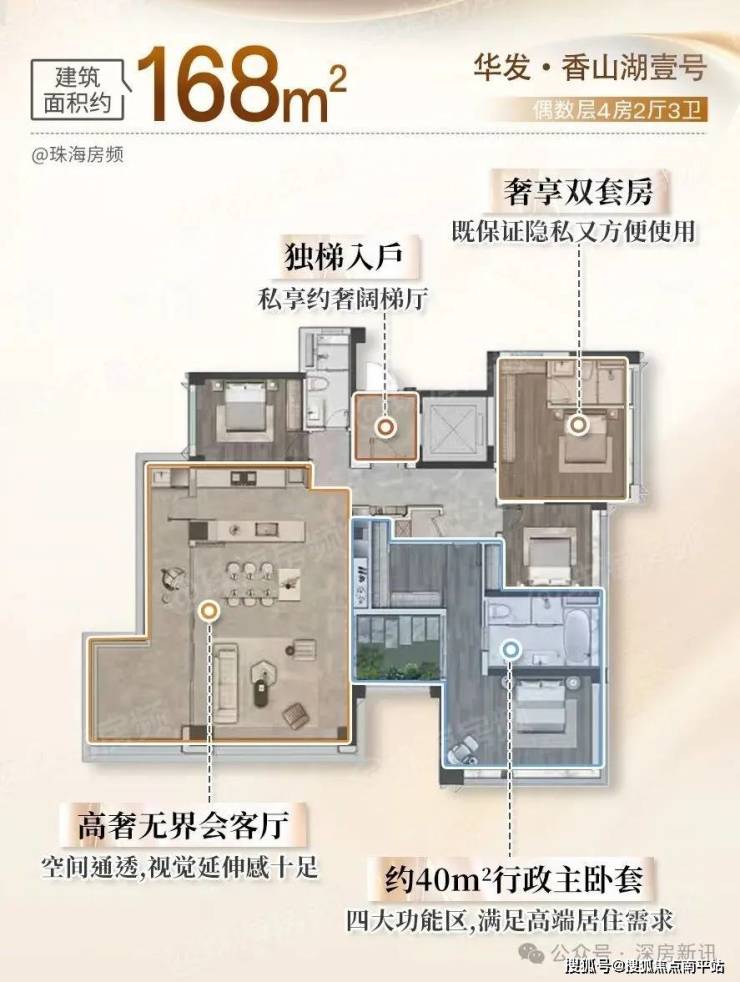 作为珠海「四化」住宅的全新作品,华发·香山湖壹号在区位占位、产品匠造、圈层营造上实现了系统性进阶: