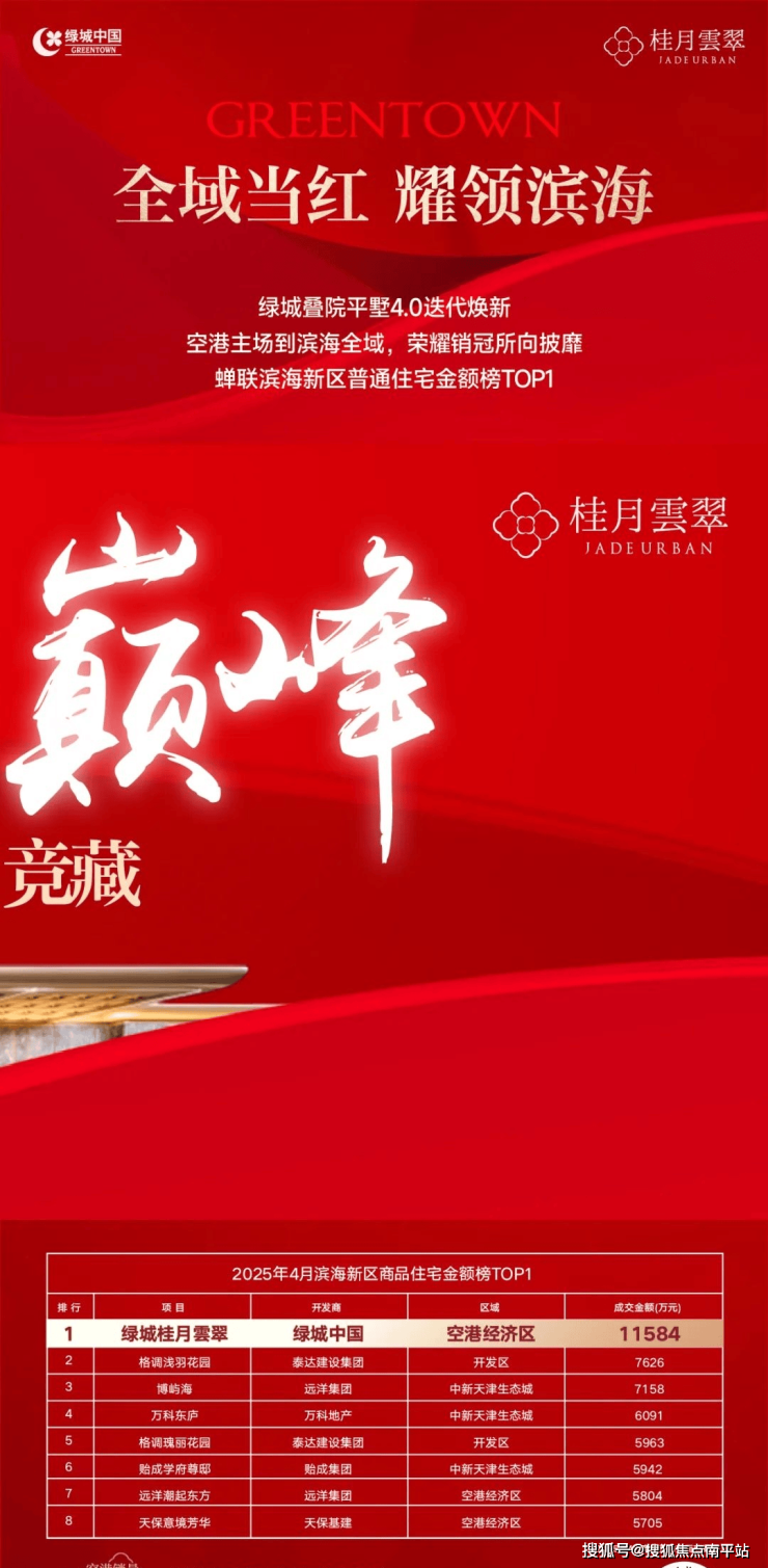 当“高品质住房”上升为国家标准,绿城以三十年躬身践行为答案,在滨海热土写下热销奇绩。绿城·桂月雲翠再次荣获滨海新区销量TOP1;空港成交金额、面积、套数三冠王;再获国际大奖双金加冕。桂月雲翠以现象级热销浪潮,印证着绿城「好房子」标准的时代穿透力。从杭州风雅到津门翡翠,这座集萃国际大师手笔的第四代住宅革新之作,以5.6米立体城市超级底盘重构空间秩序,见证空港每3位高端置业者就有1位选择绿城的绝对引领。此刻实景超配的翡翠之境,正以半年度冲刺火热之势进行最后的清盘倒数,为津门品质改善者封存最后入场券!