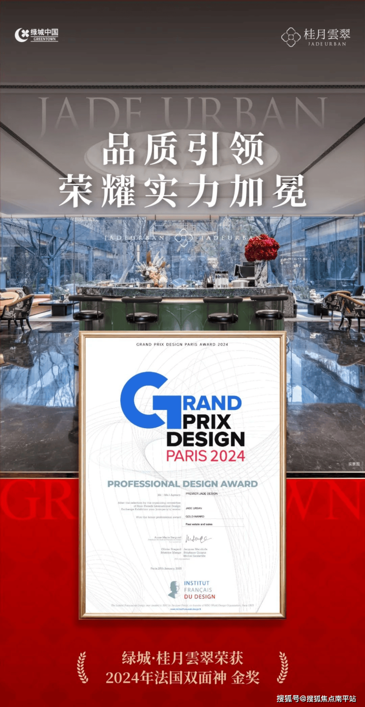 绿城·桂月雲翠面世以来,全面践行绿城“好房子”标准,以卓越的产品力与兑现力,揽获多项实力大奖。日前,更是凭借高定泛会所空间再次荣获【法国双面神】金奖、【澳大利亚设计奖】金奖,问鼎国际双冠,成就实至名归的人居标杆。