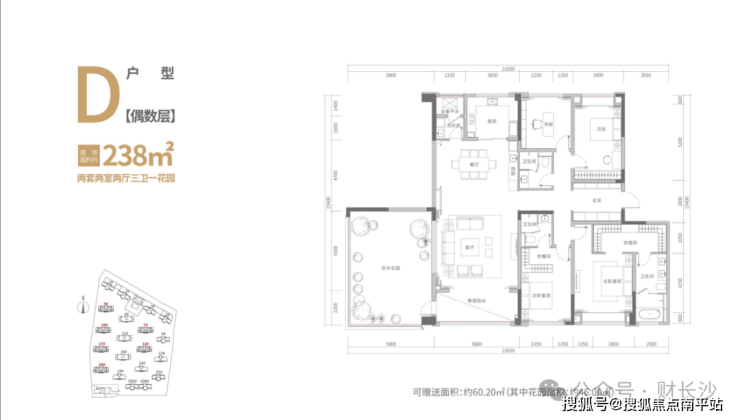 【在售面积】:小高层135-156-222m²,森林花园住宅238-296m²