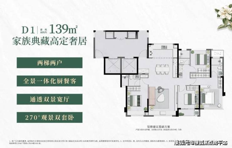 建面约139㎡户型,在泉州市场罕见地实现了 “2梯2户+类独梯入户”的越级体验,私享约9㎡电梯厅空间,归家仪式感媲美大平层。 约14.35米南向四开间与南北通透格局,最大化引入自然光。