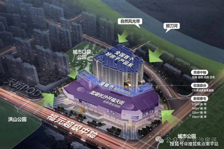 开福天街:约12万方全新消费地标,明年开业,填补百亿福元商圈高端商业最后稀贵留白;