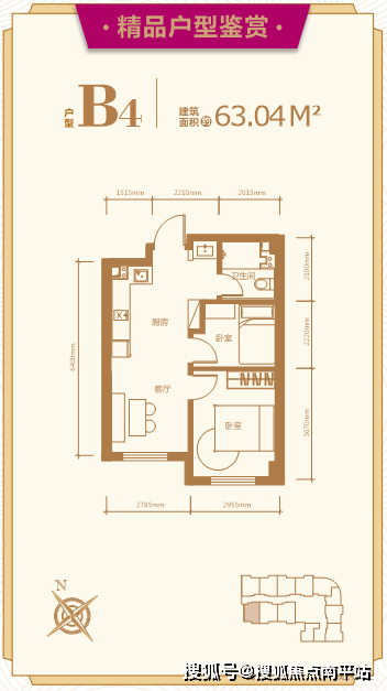 建面约:63.04平米 二室