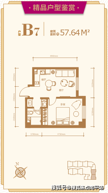 建面约:57.64平米 一室