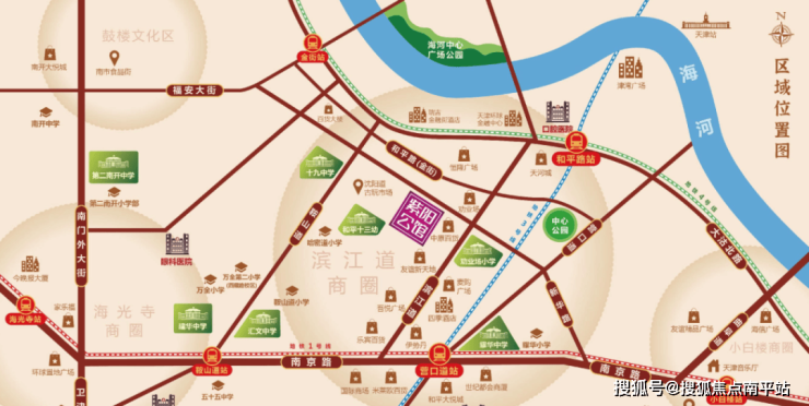 项目隶属劝业场小学+一片中学,和平重点中学比例最高片区(耀华、汇文、二南开、十九中)。