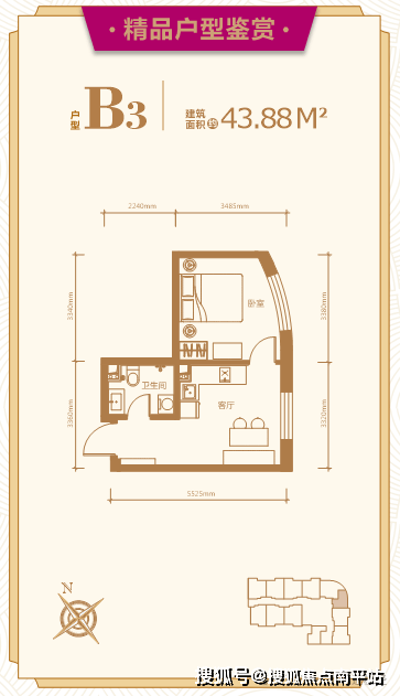 建面约:43.88平米 一室