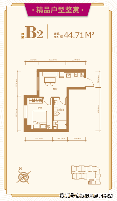 建面约:44.71平米 一室