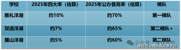雅礼洋湖:四大率约10%,公办普高率约70%,已经晋级第一梯队。