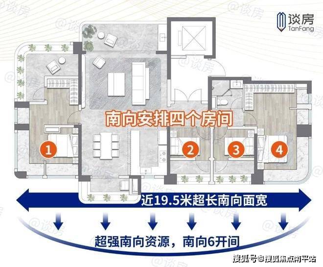 全屋打开南向6开间,实现近19.5米超长南向面宽,试问谁能拒绝满屋布满清风阳光。会呼吸的生活居所,使情绪价值一下拉满。