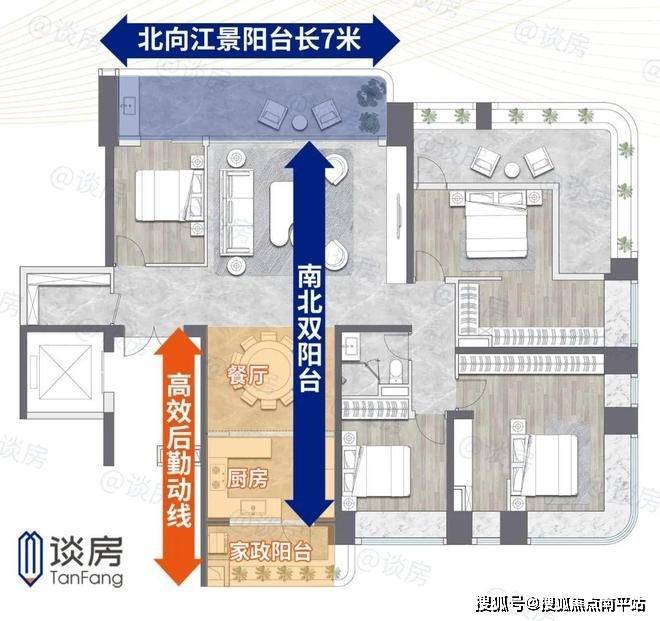 又如南北双阳台,北向阳台为休闲娱乐空间,南向家政阳台和厨房、餐厅相连,形成高效便捷的后勤动线。✅✅广州 保利珠江天悦 售楼处电话400-159-8559转5555 [专人接听]