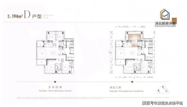 176㎡、194㎡户型标准层高约3.3米