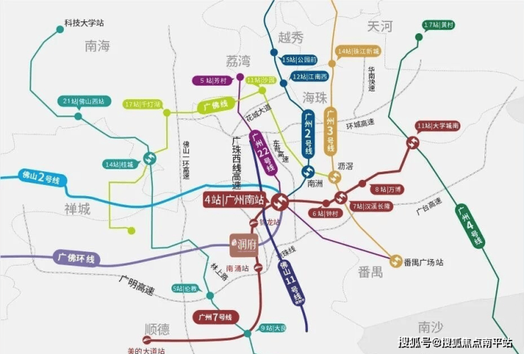 1、临广一线区域,30分钟广佛生活圈:14分钟广州南站、18分钟荔湾广钢新城、30分钟直达番禺万博CBD