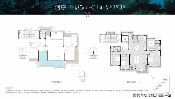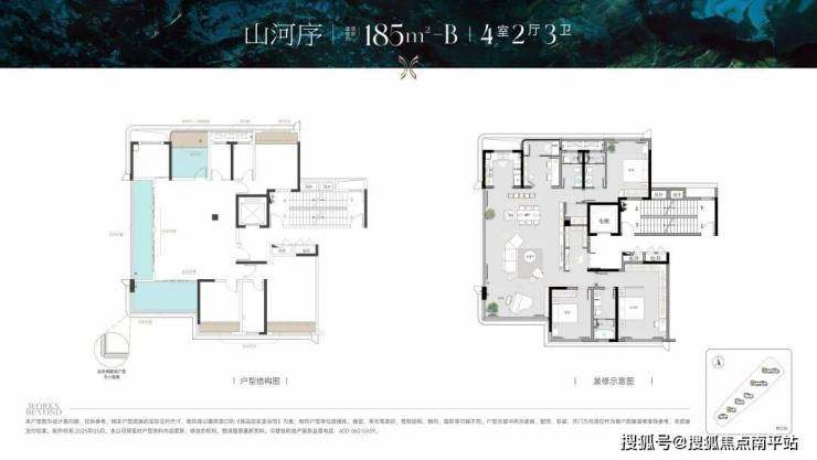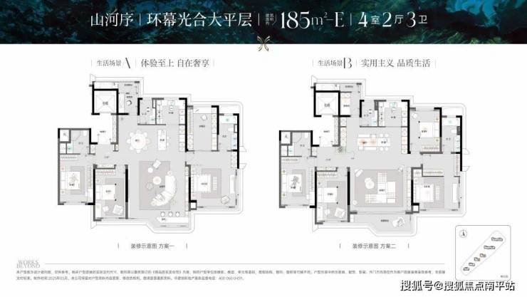 在户型设计上,山河序也将稀缺性做到了极致。整个组团仅规划 384 户, 主力户型为 185㎡与 230㎡,总价门槛超 300 万。