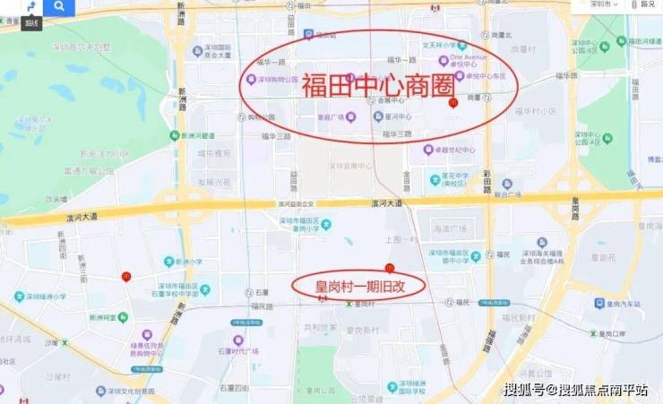 皇岗村改造项目,位于福田福民路与皇岗二街交汇处西北角,紧邻深圳地铁7号线皇岗村站,地处深圳中心的核心腹地。