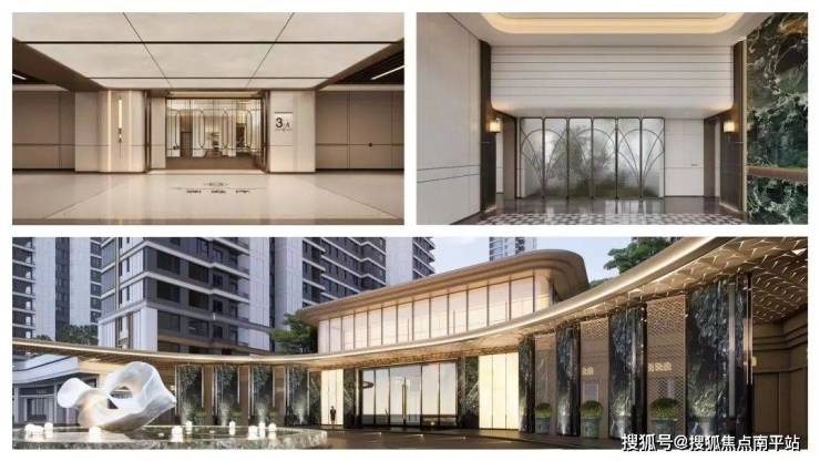 项目入户大门超80米宽、约9米高,长约40m的酒店式大门,搭配浅灰岩板景观墙、香槟金屋檐;无论是地上的入户大堂还是地下车库,全部精装高品质打造。