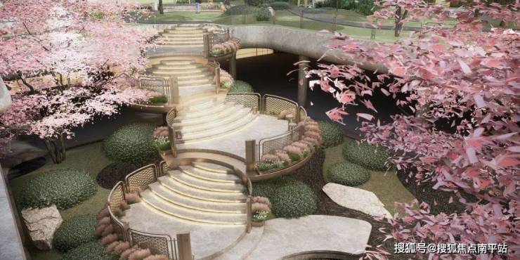 不仅如此,中欣以水岸森居度假园林打造归家轴,首创三下沉庭院,叠水观景会客厅、松果营地主题儿童游乐场、樱花林地三大场景被融入到同一空间中。