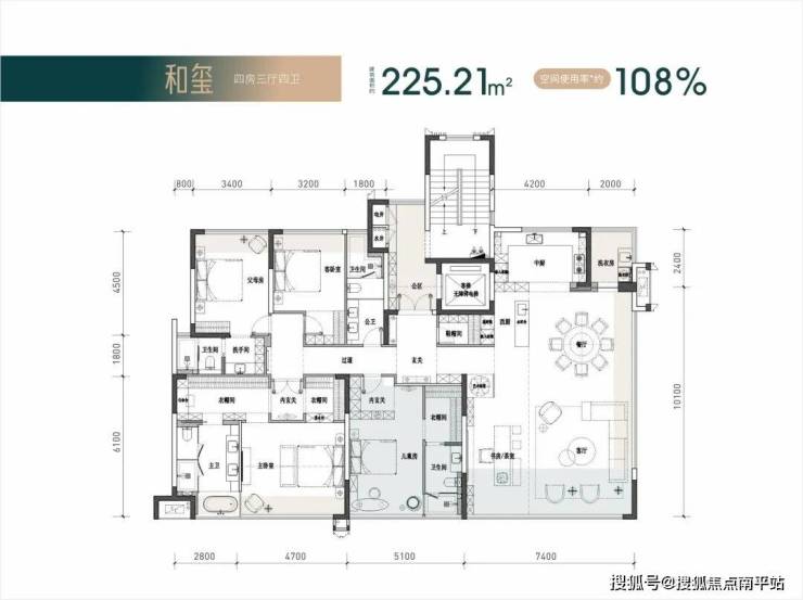 【四房两厅四卫】建筑面积约:225㎡实际得房率108%;实得面积约:243㎡,相当于旧规286㎡!(旧规户型按85%得房率计算,仅供参考)