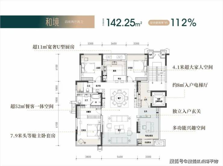 【四房两厅两卫】建筑面积约:142㎡实际得房率112%;实得面积约:159㎡,相当于旧规188㎡!(旧规户型按85%得房率计算,仅供参考)
