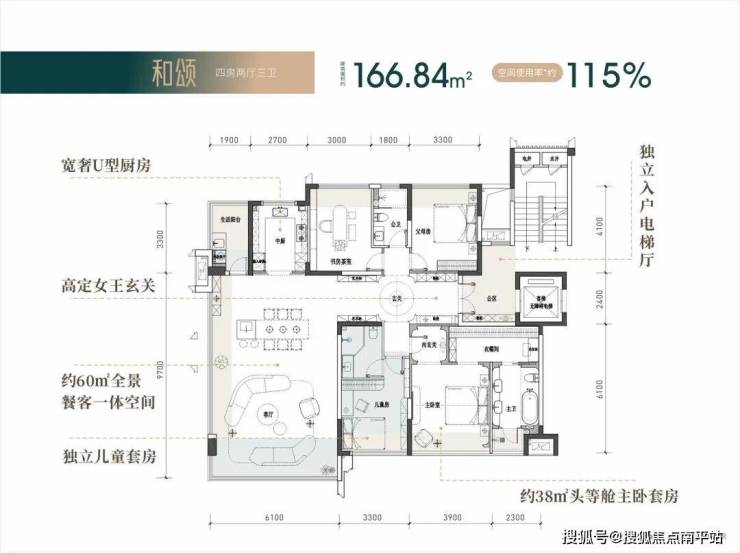 【四房两厅三卫】建筑面积约:167㎡实际得房率115%;实得面积约:192㎡,相当于旧规226㎡!(旧规户型按85%得房率计算,仅供参考)