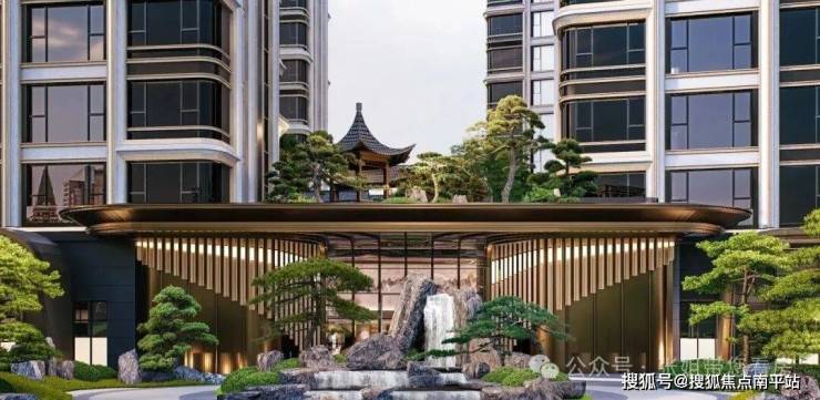 主入口叠石理水,又以迎客松加以点缀,悠闲松弛的项目气质跃然眼前。